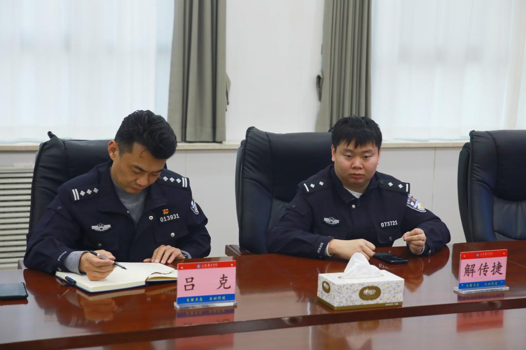 随后,吕克教导员对学校安全管理工作给予高度评价与充分肯定,并对学校长期以来对“平安校园”建设工作的支持和配合表示感谢。他重点分析了当前高校面临的新风险点与不稳定因素,建议学校进一步加强风险排查与监测预警,尤其是电信网络诈骗防范教育工作,以实际行动为打击防范电信网络诈骗犯罪,维护校园和谐稳定出做应有的贡献。同时,吕教导员还提醒要持续推进警校协同,共同做好矛盾纠纷排查化解、涉校安全隐患预警处置、校园周边环境综合治理,健全齐抓共管联动机制,切实维护校园及周边安全稳定,共同为平安校园建设贡献力量。