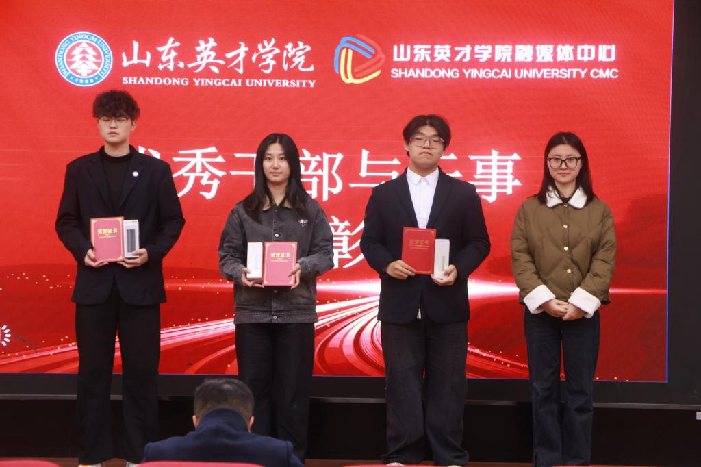 大会对本学期表现突出的优秀干部、优秀干事予以隆重表彰。获奖人员依次上台领奖,现场掌声雷动,充分彰显了融媒体中心崇尚实干、鼓励争先的良好氛围。