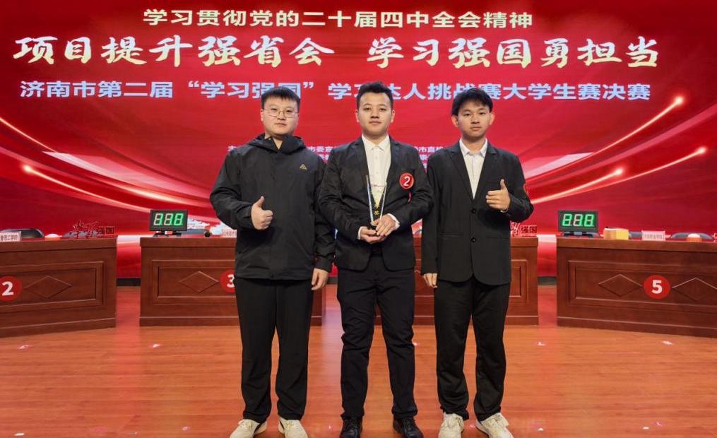 2025年11月25日“项目提升强省会 学习强国勇担当”济南市第二届“学习强国”学习达人挑战赛大学生赛决赛在济钢集团圆满落幕。我校大学生代表队凭借扎实的理论功底、默契的团队协作和出色的临场应变,最终斩获决赛三等奖,充分展现了我校学子勤学善思、奋勇争先的良好精神风貌。