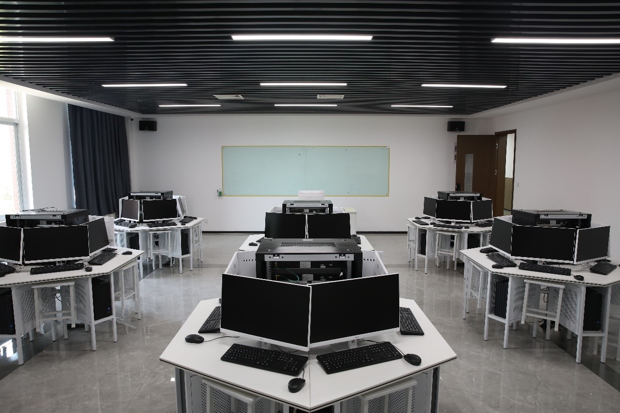 四间专业实验室每个房间占地面积约为95.4平米,均配有53台计算机,主要承担建筑工程、机电工程、汽车工程等类别的专业课程。目前已经安装了鲁班、广联达等相关实验教学软件。另外四间实验室也可以作为标准化考场开展相关的专业技能考试。