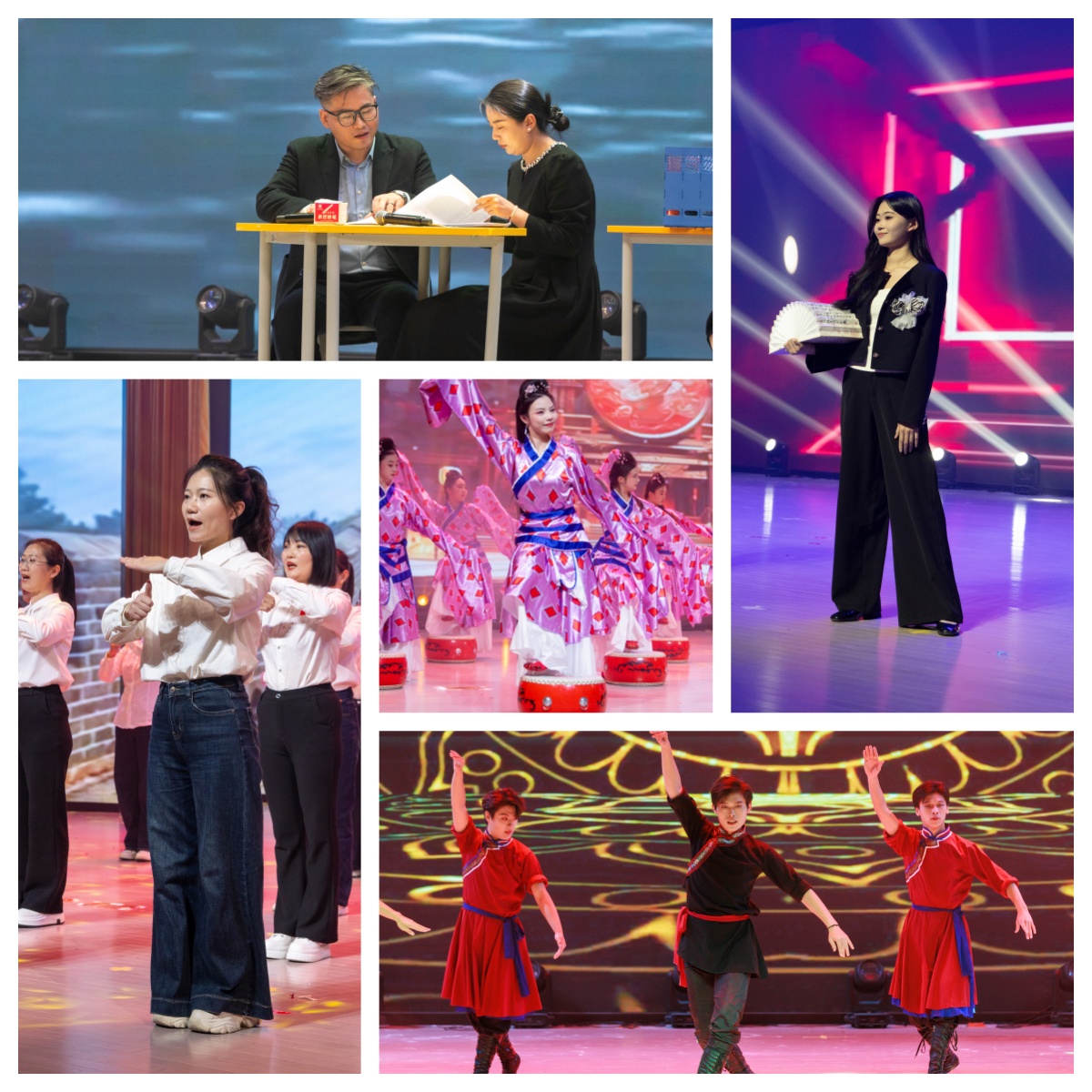 第三篇章将气氛推向新的高潮。设计学院的喜剧表演《王牌大咖秀》幽默风趣,引得笑声不断;马克思主义学院的手势舞《国家》庄严深情,表达了对祖国的无限热爱;医学院的配音表演《老师版甄嬛传》创意十足,巧妙融合专业与趣味,展现了教职工多才多艺的一面;音乐舞蹈学院典雅优美的古典舞《相和歌》,则为观众带来一场跨越时空的视觉盛宴,尽显艺术魅力。