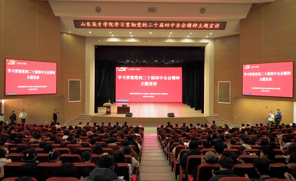 为深入学习贯彻党的二十届四中全会精神,引导广大师生准确把握“十五五”时期国家发展蓝图与战略部署,切实把思想和行动统一到党中央决策部署上来,山东英才学院党委高度重视、周密安排,自2025年11月起,按照“分层分类、精准滴灌、全域覆盖”原则,面向党员干部和师生开展系列宣讲活动。累计组织集中宣讲5场、分类宣讲十余场,覆盖师生三千余人次,在全校迅速掀起学习热潮,有力推动全会精神进校园、进课堂、进师生头脑。