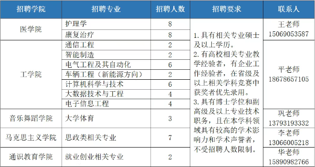 二、专任教师招聘岗位与要求