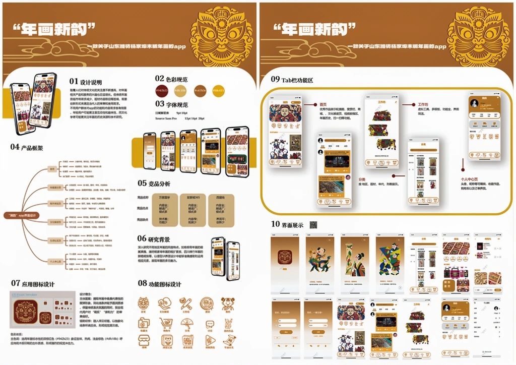 此外,多个作品在不同设计领域崭露头角。视觉传达设计专业的《年画新韵appUI交互界面设计》荣获二等奖,作品以时尚化的设计语言活化传统年画,探索了非遗文化的数字化传播新路径。产品设计专业的《多功能音箱设计》、《老年防抖餐具设计》等获奖作品,则体现了学子们对社会需求与人文关怀的敏锐洞察。