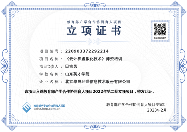 近日,教育部公布了2022年第二批产学合作协同育人项目立项名单,山东英才学院智慧商务英语写作翻译学习指导中心建设、智能审计实践教学平台建设研究、《云计算虚拟化技术》师资培训、新医科背景下基础医学实验虚实融合创新模式研究项目获得批准立项。