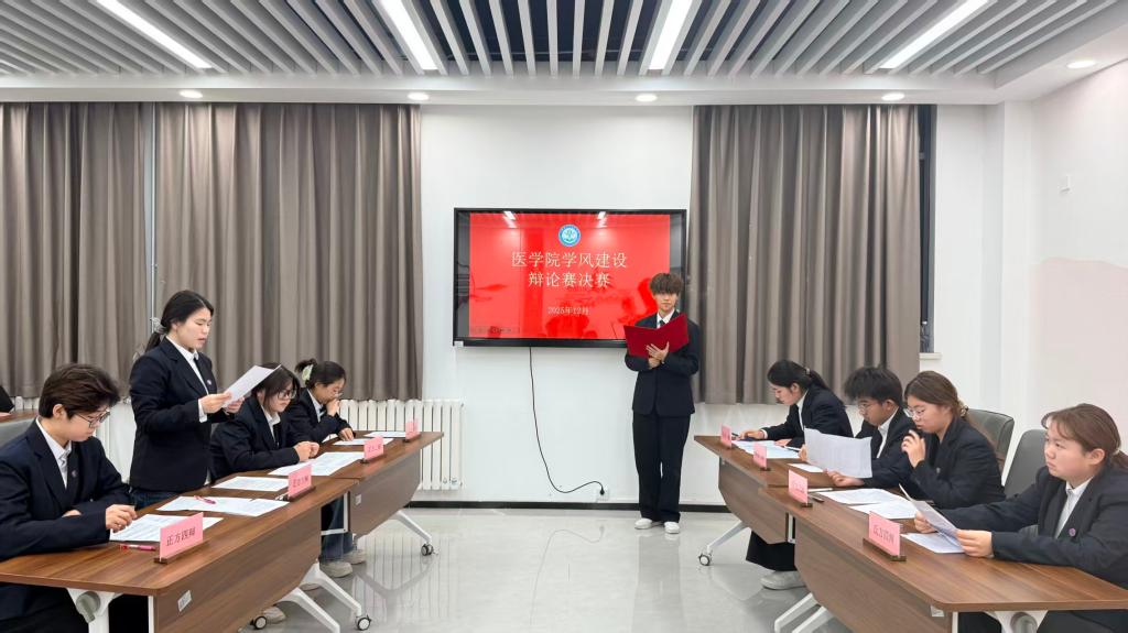 为丰富校园文化生活,强化校园学风建设,培养同学们的创新精神与团队协作能力,提升语言表达、逻辑思维及临场应变素养,12 月 17 日,医学院于党建活动室221举行医学院学风建设辩论赛决赛。