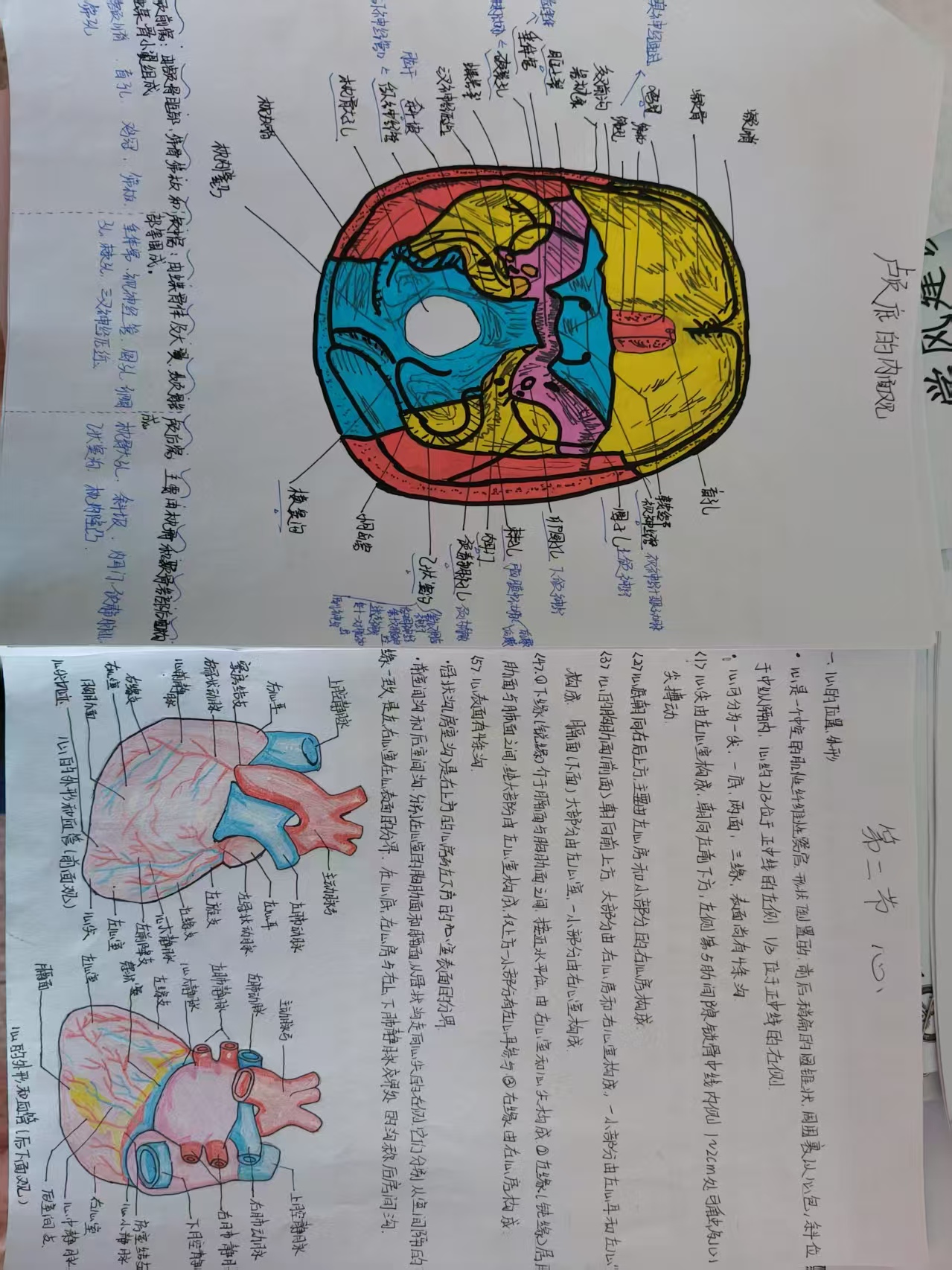 本次活动征集了人体解剖学、人体运动学、功能解剖学等多门医学专业课程的课堂笔记,参展作品均来自高职康复治疗技术、高职护理、专升本康复治疗学等专业的学生。这些笔记或辅以精准的人体结构手绘,或通过色彩标注梳理知识框架,内容详实、逻辑清晰,既展现了医学生对专业知识的扎实掌握,也体现出严谨认真的学习态度。活动现场,师生们驻足观摩、交流探讨,优秀笔记所呈现的学习方法与思维模式,让在场师生深受启发。