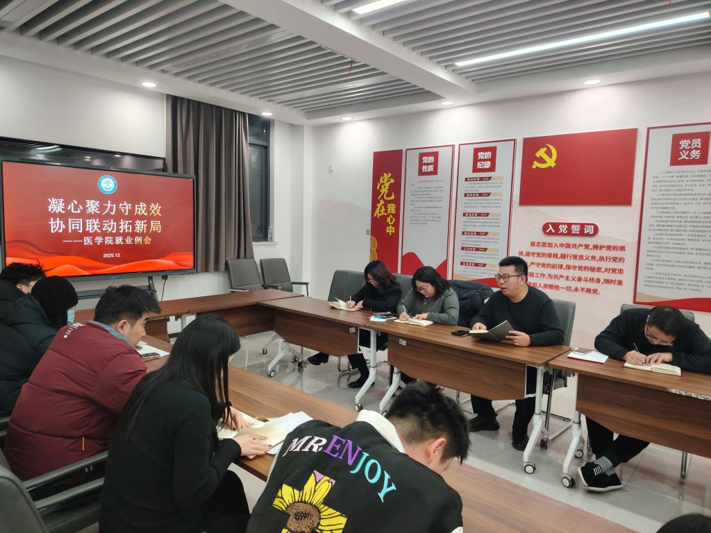 为全面总结2025年就业工作成效,精准部署2026年就业攻坚任务,12月29日,山东英才学院医学院在221党员活动室召开就业工作例会。医学院党总支副书记张国栋、全体辅导员参加会议。