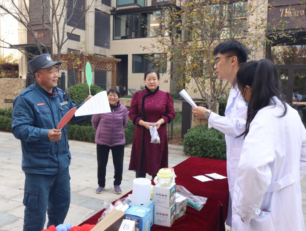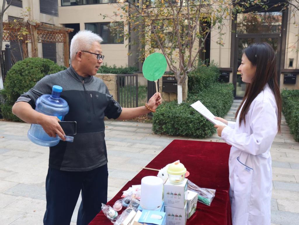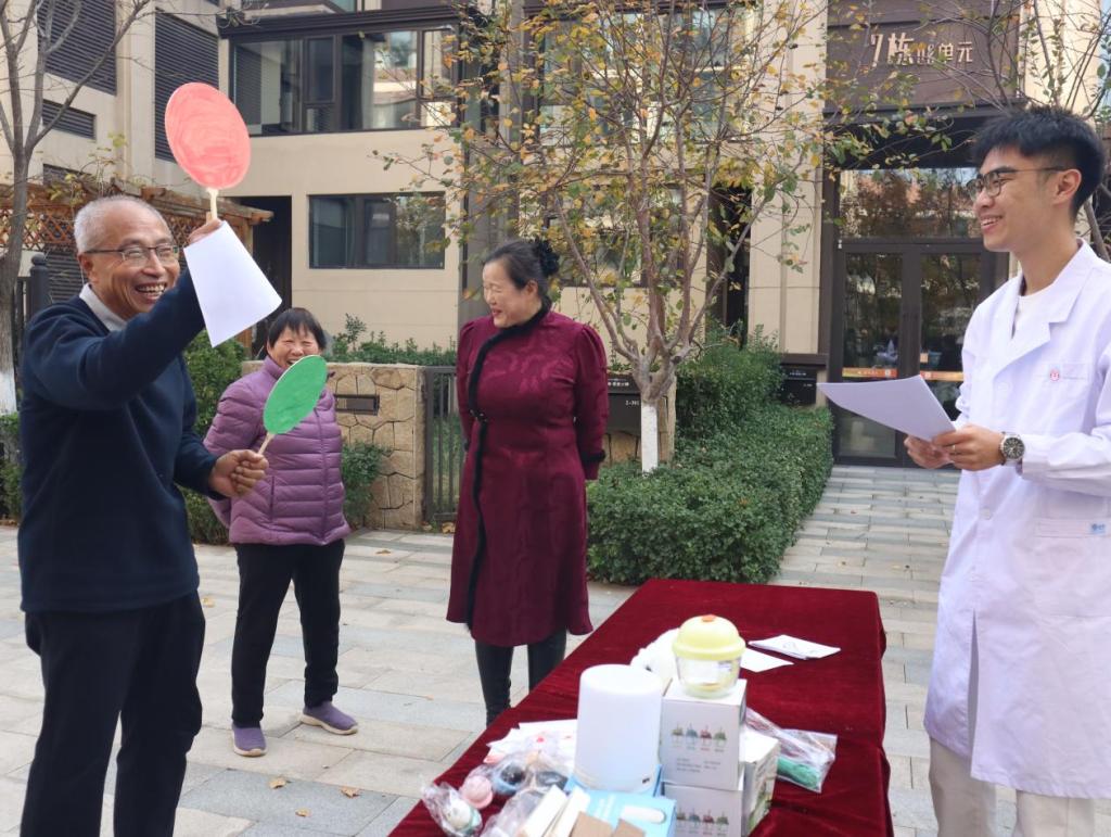 游戏环节让现场氛围愈发热烈:“健康抢答——红绿灯举牌”小游戏里,居民们举着“红灯”“绿灯”卡牌踊跃作答,不少老人抢答时眼神发亮,答对后接过礼品的笑容格外灿烂;“健康饮食大配对”环节中,大家围着食物图片认真分类,志愿者们则全程热情引导,不仅及时为答错的居民讲解知识点,还笑着给快速完成配对的参与者递上小礼品。现场老人们一边拿着礼品,一边和志愿者聊起健康知识,热闹又温馨的氛围让整个社区都暖意融融。