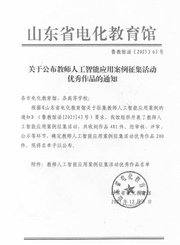 近日,山东省电化教育馆公布教师人工智能应用案例征集活动优秀作品名单,我校工学院李飞老师凭借作品《AI赋能教师:数字人课程教学设计“提质增效”新范式》脱颖而出,荣获本科组奖项。