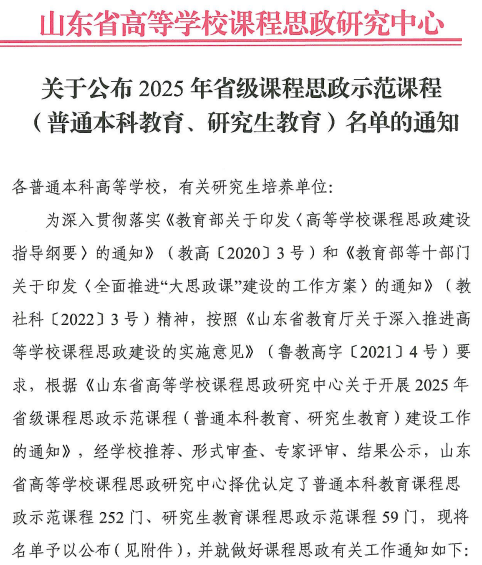 喜报!我校两门课程获评2025年省级课程思政示范课