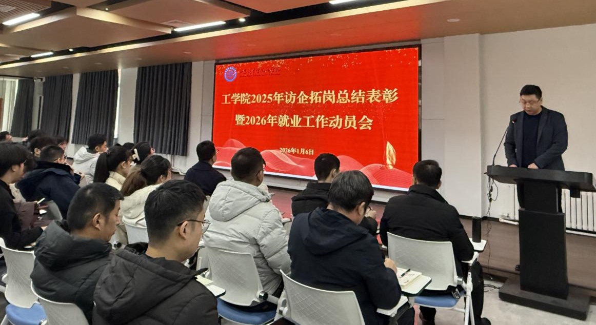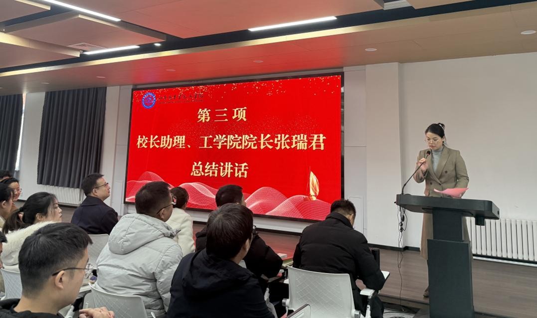 校长助理、工学院院长张瑞君在总结讲话中,对2025年访企拓岗工作成绩予以肯定,并对全体教职工的付出表示感谢。他强调,2026年就业工作需由“重规模”向“重质量”转变,聚焦重点领域精准对接企业,深化校企合作,建设优质实习就业基地,凝聚全院力量助力毕业生高质量就业。
