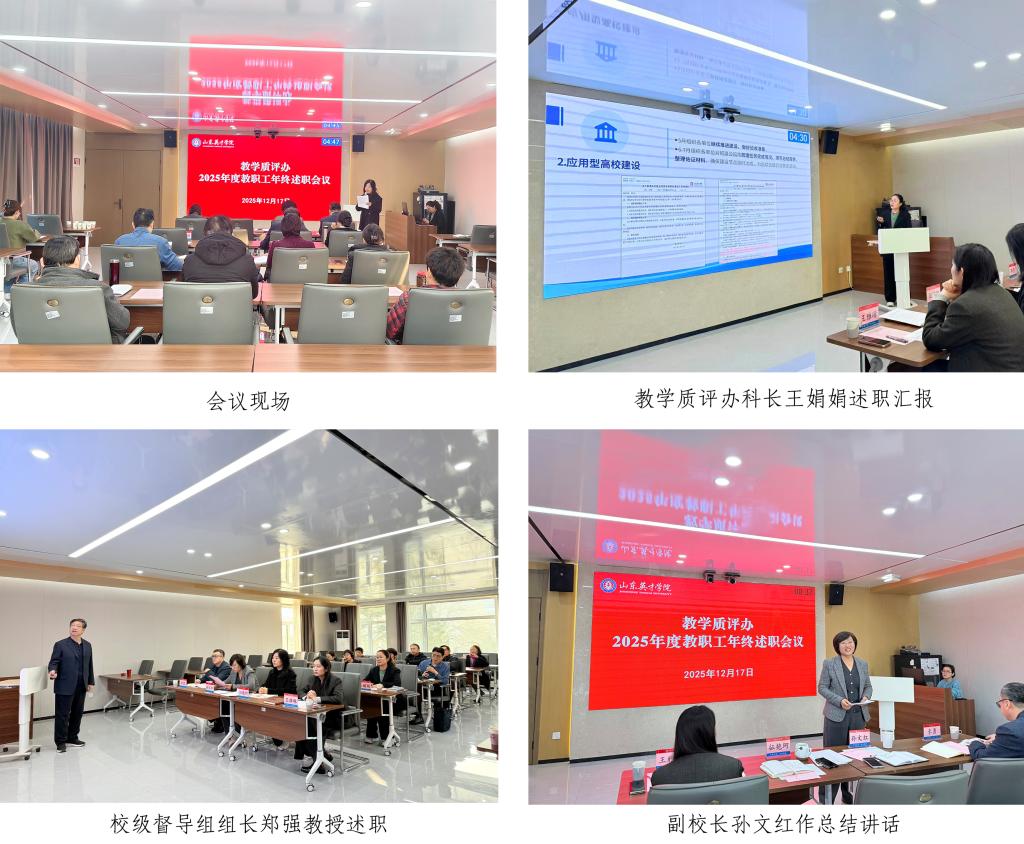 为全面总结2025年度工作完成情况,系统梳理工作中的亮点与不足,进一步凝聚共识、明确方向,持续提升学校教学质量监控水平,12月17日上午,教学质评办在南校区办公楼第二会议室召开2025年度教职工年终述职会议。副校长孙文红,督查室李勇老师,党政办王雅琳老师,全体校级督导、教学质评办全体工作人员参加会议。会议由教学质评办主任征艳珂主持。