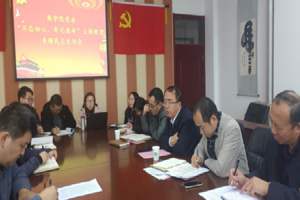 为深入学习贯彻习近平新时代中国特色社会主义思想,全面贯彻落实党中央决策部署,根据党章和党内有关规定,按照市委教育工委、市教育局党组《关于做好全市教育系统第二批主题教育专题组织生活会准备工作的通知》的会议精神和学校党委的相关要求,12月9日下午,商学院党委在商学院二楼会议室召开“不忘初心、牢记使命”主题教育专题组织生活会,会议由商学院党委书记付宏华同志主持。学校校长夏季亭、校长助理宋波龙同志参加会议并做了点评和总结讲话。