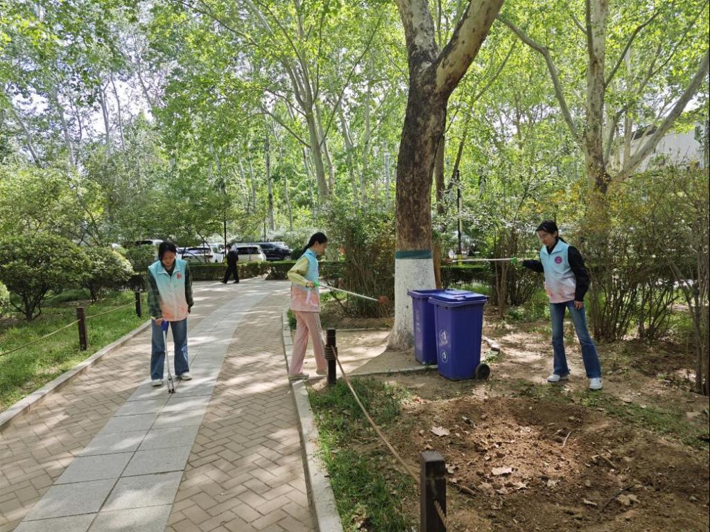 她们还来到公园绿化区域,清理杂草。虽任务繁重,但她们不怕脏累,用工具清理,让绿地恢复整洁美观,为公园生态环境贡献力量。