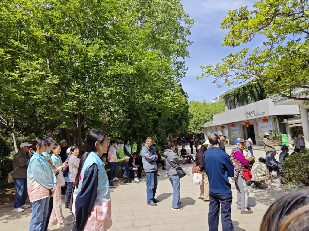公园一角,戏曲表演吸引众多居民游客围观。为保障大家安全和观赏体验,女大学生们担当秩序维护员,引导人群保持合适距离,提醒注意脚下安全,避免拥挤推搡,让精彩戏曲能顺利欣赏。