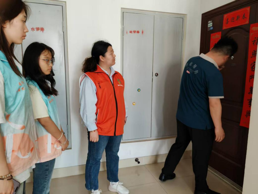 活动刚一开始,实践成员们分组进入社区开启一天的实践活动,刚进入社区时,实践成员观察到社区内老年人偏多,因此实践成员开始以各社区楼道为开始点,检查楼道消防设施的可使用性和安全性以及楼道内应急通道的疏通。