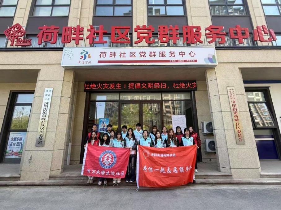 2025年4月14日的早晨,山东省济南市济阳区河畔社区党群服务中心的门口热闹非凡。山东英才学院商学院(国际学院)的学生身穿志愿服务的马甲,怀着高昂的斗志来到了这里,为此开展为期一天的百万大学生进社区的志愿活动。