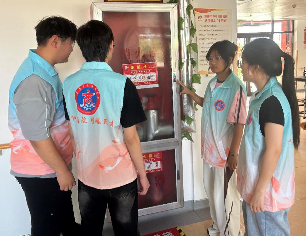 除了欢乐的文娱活动,志愿者还开展了消防知识实践教学。他们通过实物演示,详细讲解消火栓的使用步骤,并指导老人模拟操作,增强安全防范意识。在温馨的按摩互动环节,志愿者们用专业手法为老人舒缓肩颈、按摩手臂,耐心倾听老人们讲述过去的故事,现场充满温情。