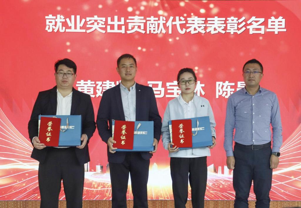 第一项,表彰就业突出贡献代表。就业是学院人才培养的重要环节。在过去一年中,黄建凯、马宝林、陈晨三位老师在学生就业指导与岗位拓展方面表现突出,荣获“就业突出贡献奖”。商学院学院党委副书记李帅为获奖教师颁奖。