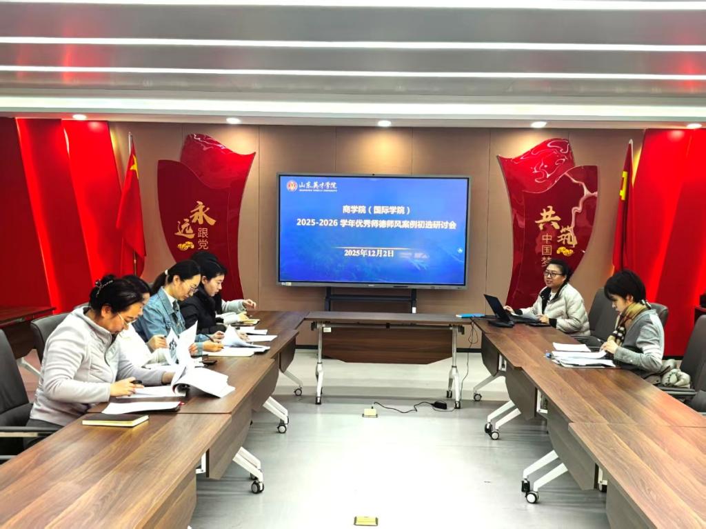 为深入推进师德师风建设,弘扬高尚师德风范,2025年12月2日,商学院(国际学院)在商学院楼408室组织召开了师德师风优秀案例初选研讨会。商学院副院长王鸾、教学秘书及各系主任共同参与此次案例评选工作,旨在通过典型引领,进一步营造立德树人、崇德尚教的良好氛围。