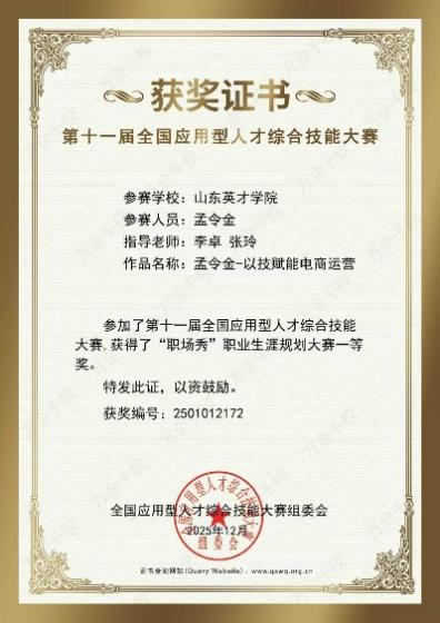 12月18日,第十一届全国应用型人才综合技能大赛圆满落下帷幕。在这场赛事中,商学院(国际学院)参赛学子表现卓越,凭借扎实的专业技能、出色的创新能力以及默契的团队协作,一举斩获一等奖8项、二等奖31项、三等奖22项的优异成绩。