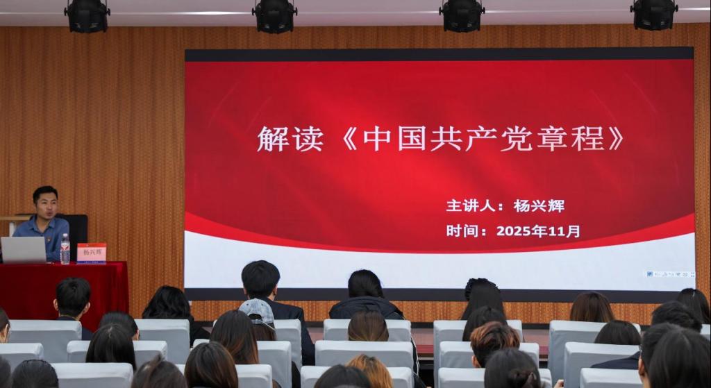 培训同期,商学院学生第二党支部组织委员杨兴辉带领学员集体学习《中国共产党章程》,聚焦党章核心要义、党员行为准则等关键内容深入解读,指出党章是党员修身立业的根本遵循、行动前行的指路明灯。他强调,入党积极分子需将党章学习融入日常、常学常悟,以党章为镜正心立身、端正入党动机,在校园生活中践行党的宗旨,以实际行动展现新时代青年向党组织靠拢的坚定决心。