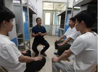 每当看到班级孩子的一张张笑脸,马宝林老师总可以体会到作为一名大学辅导员带给他的幸福!马宝林老师进入山东英才学院已经9年有余,他把智慧和汗水都献给了自己热爱的大学辅导员的工作之中。他的学生说:“只要有辅导员老师在,我们就心安。”无论是楼梯的拐角处还是操场,经常可以看到马宝林老师和学生们同行的身影。作为商学院的疫情防控负责人,贯彻着“不漏一人,不留死角”信息排查,密切关注学生思想状态,缓解学生焦虑心情,分享入校教师、志愿者的生活日常……从封校至今,马宝林老师总要忙到深夜。每周他都会去宿舍里与同学们进行谈心谈话,那种没有束缚般的沟通,仿佛置身于家庭之中,在交流中,了解学生的学习、以及心理情况的变化。