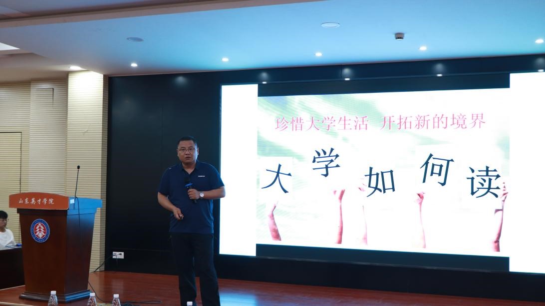 济南思成网络科技有限公司总经理王首权在发言中表达了对英才学子创造性和创新性精神的欣赏,并表示公司将一如既往地关注、支持山东英才学院的各项发展,助力英才搭建更广阔的学习和实践平台,为山东教育事业贡献微薄力量。