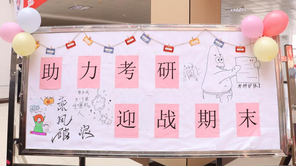 为鼓舞考研学子士气,助力他们在考研战场上披荆斩棘,同时激励同学们积极备战期末考试,以良好的状态迎接学业挑战,12月20日,商学院(国际学院)于北校区图书馆大厅举办“助力考研,迎战期末”交流走访活动。