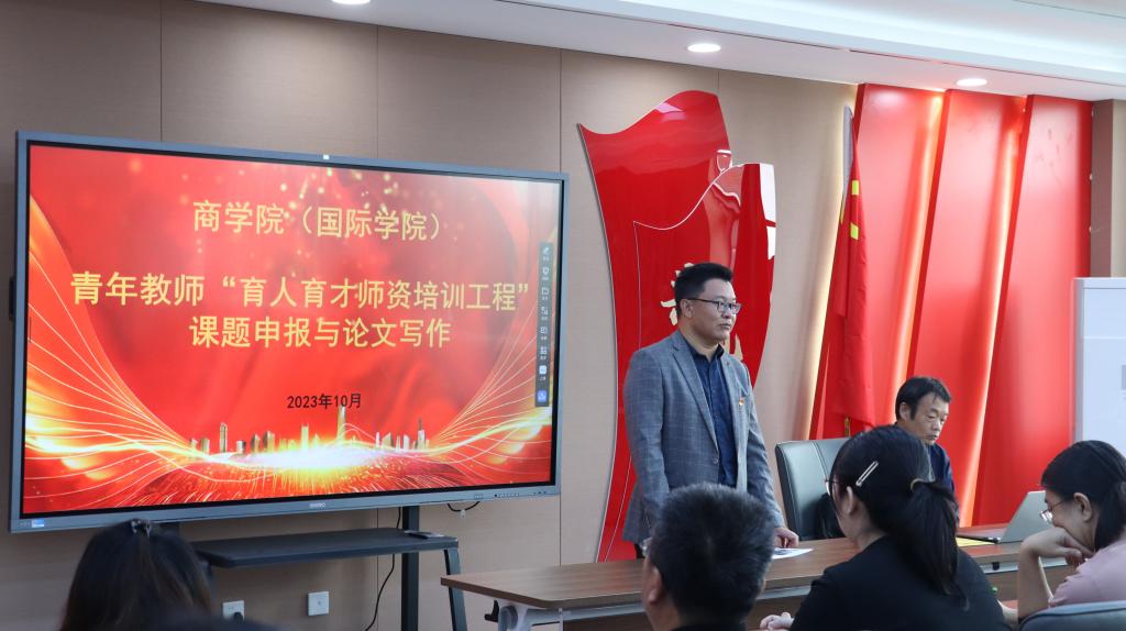 为促进商学院(国际学院)青年教师之间的交流互动,活跃学术氛围,激发科技创新热情,提升团队教学、科研水平,发挥教研科研对人才培养的引领作用,商学院(国际学院)于10月12日上午举办课题申报与论文写作专题学术沙龙。本次学术沙龙由党总支书记、院长赵坤主持,山东财经大学教授、博士生导师高敬峰主讲,各系部副教授、主持厅级以上课题的老师以及部分青年教师参加了沙龙活动。