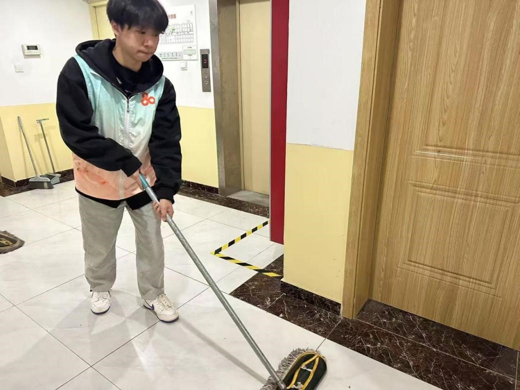 在活动过程中,志愿者们积极细心打扫楼道,从顶楼到一层出口,不放过任何一丝死角。志愿者们也希望通过自己的劳动为老人们创造一个更干净舒适的居住环境。