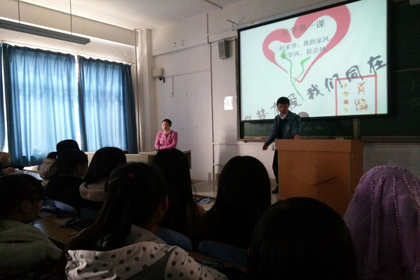 山东英才学院北校区青年志愿者协会按照学院要求于2016年3月15日经管楼202教室开展了“一封家书,我的家风,促学风,促会风”的“开学第一课”一书三风教育主题大会,会长杨恒东主持并对会员进行了针对性的教育,让大家颇感亲切与温暖。