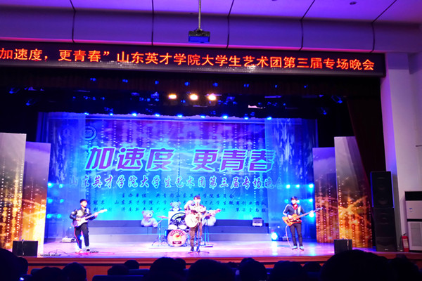 晚会正式开始前,艺术团全体成员着装各色服装,奔跑于舞台和后台之间,剧务人员有序的准备好了一切晚会准备,纪检人员身穿正装,各自坚守岗位。下午5点整,全体观众在纪检人员组织下,在大学生活动中心前集合完毕并快速有序入场。随后嘉宾、领导踏着掌声入场,带起了全场气氛。六点整,晚会以“加速度,更青春”为主题拉开了序幕。中途纪检人员,安排得当,配合恰当,中途离场问题都得到了妥善解决,晚会以歌曲串烧完美收场。剧务人员在晚会过程中的完美配合,使得晚会进行的非常顺利。演员和领导合影后,纪检人员在负责人的一声号令下,六个大门瞬间打开,纪检人员安排观众快速离场并打扫会场,整个晚会圆满结束。