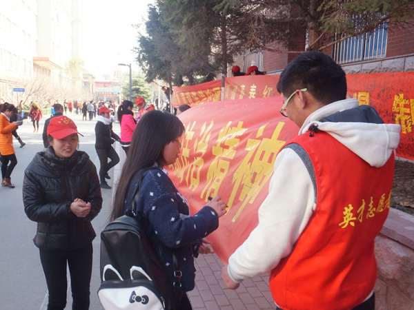 12月4日上午11:00,志愿者们准时到达大学生活动中心。活动在欢快的氛围中拉开帷幕。青年志愿者们在大学生活动中心大力宣传青少年宪法意识。围绕“维护宪法权威•共创法治济南“这个主题。以宪法为核心的中国特色社会主义法治体系,弘扬宪法精神,弘扬社会主义法治精神,增强青少年宪法意识和法制观念,促进青少年健康成长,推进法治济南建设为主。青年志愿者协会组织了宪法条幅签名,让来往的人员提高了自身的建设,培养了他们树立公民意识和宪法观念,明确自己的权利和义务,增强维护宪法权威的自觉性。