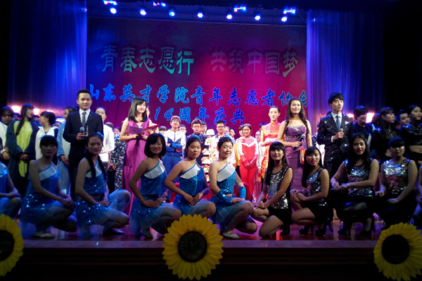 为庆祝我校青年志愿者协会成立14周年,进一步扩大青年志愿者协会在学院的号召力,不断发展壮大协会的规模和力量,青年志愿者协会于2014年12月12日星期五18:00在大学生活动中心隆重举办了以“青春志愿行・共筑中国梦”为主题的十四周年庆典晚会。 本次晚会出席的嘉宾有:校团委书记龙新良,学前教育学院基层团委书记王坤丽,青年志愿者协会指导老师寻芬,校团委宣传部部长兼社团指导老师毕璇,校团委老师刘超以及协会第十一届、第十二届委员、第十三界委员代表们和山东大学,山东大学、山东中医药大学等20所驻济高校志愿者代表们。