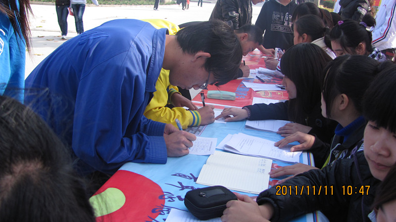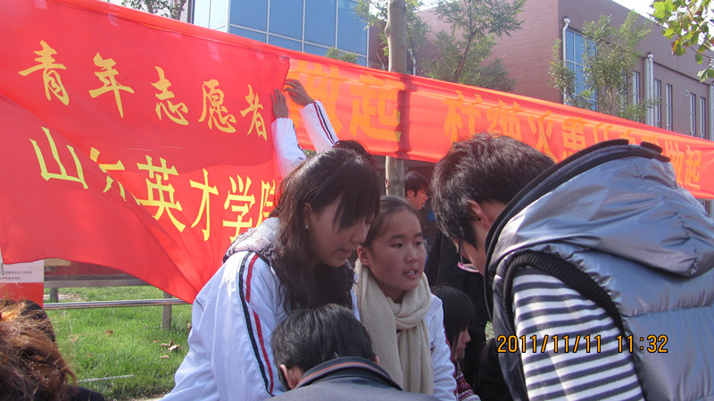 2011年11月11日 ,在院团委的组织下,山东英才学院北校区青年志愿者协会在餐厅北门举行了二次招募。
