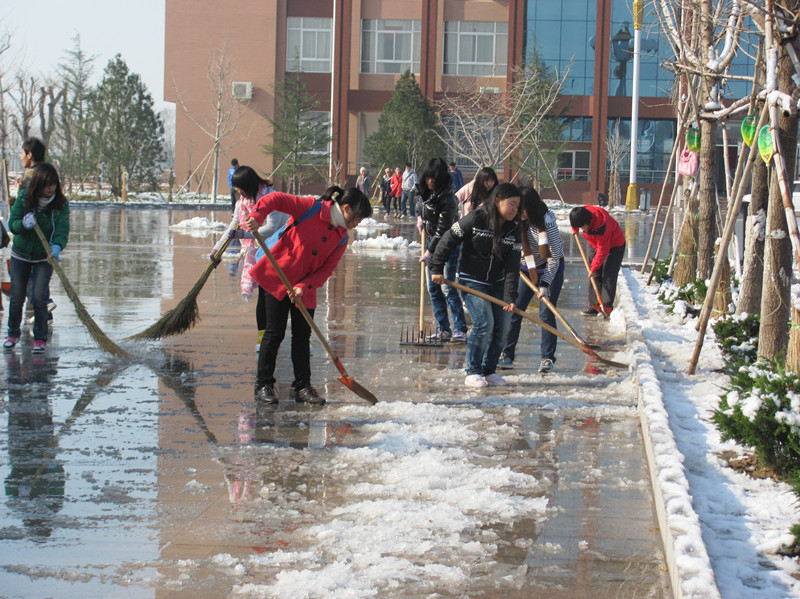 本次活动,北校区志愿者们表现积极。为了给同学们创造一个更加洁净、安全的校园,为了让同学们能够更加方便于在道路上行走,志愿者们不怕冷,不怕累,认真的清扫每一处积雪,虽然志愿者们的脸和手都被冻的通红,但是依旧毫不退缩,干劲十足,把“顽固”的积雪一次一次的去除,最终,在志愿者们两个多小时的努力下,一条条洁净的道路展现在了同学们的面前。本次活动圆满结束,虽然有些冷,有些累,但志愿者们脸上洋溢着灿烂的笑容。