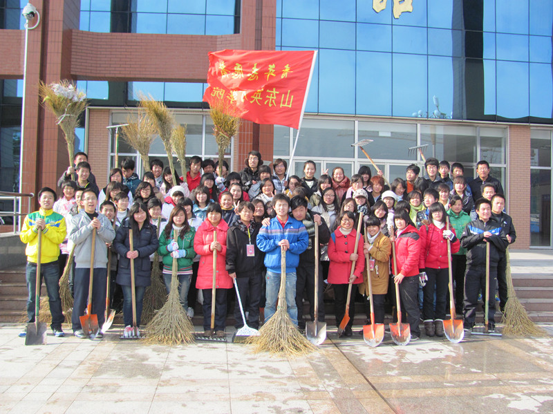 十一月三十日上午十点 ,在北校区青年志愿者协会会长杨忠华的带领下,北校区的志愿者们在校园的各个道路上组织开展“校园积雪大清扫”活动。