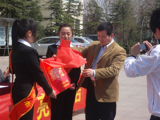 12点钟活动正式开始,首先院团委王东生副书记宣读了此次活动的开幕词,接着由院学生副主席吕辉军、山东英才学院青年志愿者协会会长刘悦雷分别为广大的学子介绍了西部山村孩子们的生活教育现状和宣读了捐赠的范围和细节,然后由院团委龙新良书记为我院“爱心社”进行揭牌,并由而学生组织代表进行现场捐书活动。