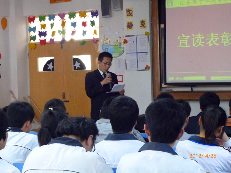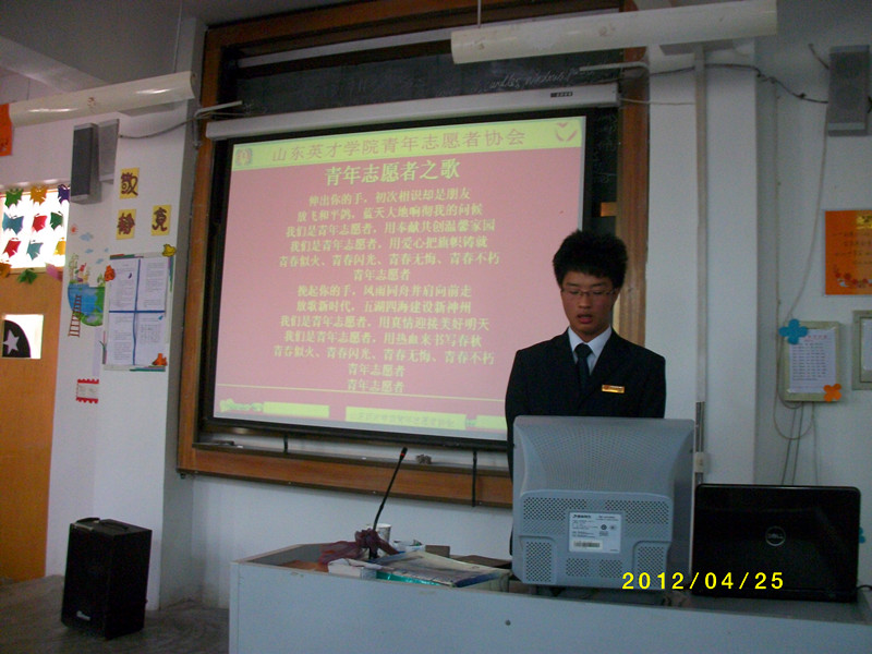 2012年4月25日 中午12:00,山东英才学院青年志愿者协会在A楼1001举办“创先争优志愿者在行动”内部评优表彰大会,山东英才学院院团委志工部部长王坤丽老师参加此次大会。