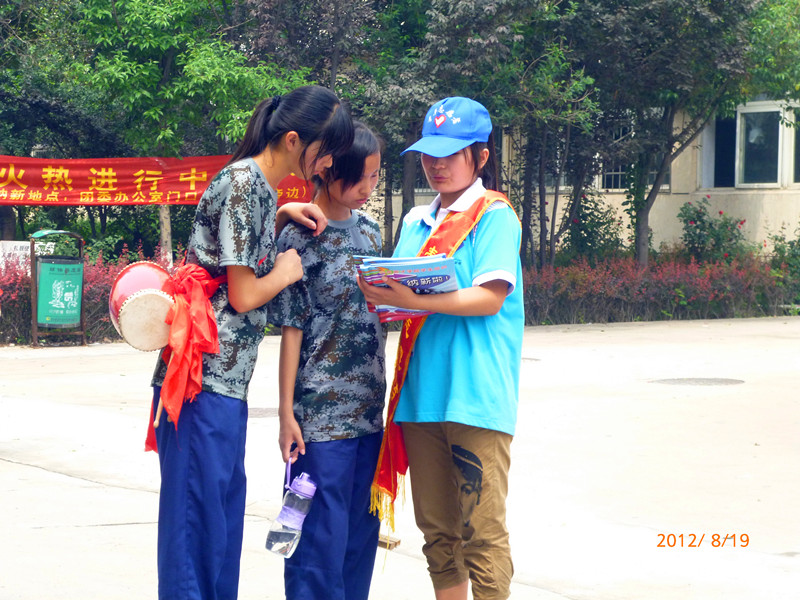 志愿者们为广大的英才学子发放宣传手册