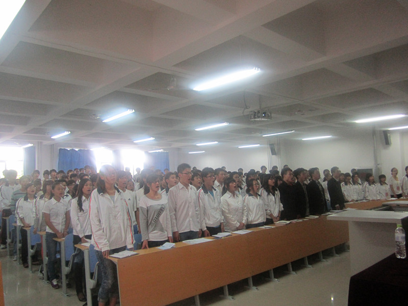 中午11点50分会议正式开始。会议第一项,由刘超老师介绍与会领导。第二项全体起立齐唱国歌。会议第三项,由院团委副书记王东生讲话。在会议中,王东生副书记总结了上学期英才学院的团学工作,并要求北校区的志愿者能在新的一学期里以更好的精神面貌去迎接全新的挑战。同时王书记也要求我们以怎样的状态去实现大学梦想?她强调大学生不能有“如果”这两个字,王书记教育我们要成事先成人。会议第四项由北校区团代会学生代表冷建涛发言。第五项由团委龙新良书记发言。龙书记表达了对北校区寄予厚望,团干部及师生的牵挂,同时对纳新取得好的业绩表示祝贺,对省委书记姜异康看望英才学院教职工所传达的政治意义及精神的阐释,对所有志愿者提出六点要求:讲健康讲学习 讲政治 讲正气 讲纪律 讲奉献。从各个方面对我们提出了要求。教导我们如何成为一名真正的合格的优秀的团学干部。最后龙书记补充要求我们要用正确的方式爱国,关注时事。最后由团委刘超老师总结了会议的内容,并对北校区的的志愿者提出了新的要求,要在上学期的基础上更好的开展本学期的工作。接着,全体代表起立,郑重的向院团委,向团委老师宣誓:没有最好,只有更好请团委龙书记,王书记,肖帅老师以及没有到场的团委老师相信我们。会议最后一项,全体起立,齐唱团歌。本次会议圆满结束。