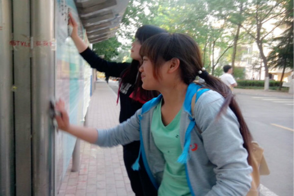 2014年5月5日,下午4:40青年志愿者协会志愿者在办公室集合完毕,为美化校园“宣传栏清洁”活动做准备工作。协会会长米孝海亲自指挥分配工作,将志愿者分成3个小队分别到校园三大区域清理。