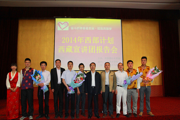 5月8日,西部计划西藏宣讲团报告会在我校学术报告厅顺利举行,参加此次会议的领导有党委书记夏季亭、学工部部长龙新良、团委副书记王鹏飞,我校志愿者代表参加西部计划西藏宣讲团报告会。