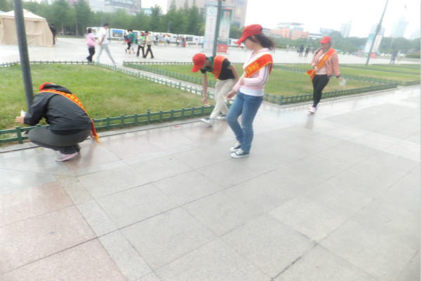 此次活动志愿者们分别在两个志愿者服务岗进行志愿服务,志愿者们整齐的站在志愿服务岗周围,始终坚守在自己的岗位上,不断发扬吃苦耐劳的精神,用他们真诚的微笑和辛勤的努力,穿梭在人群中不停的为行人服务,假日期间,泉城广场的人流量明显提升。志愿者们热心的向询问路线的行人指路,有些志愿者怕行人找不到路,还特意带他们走一段路,直到志愿者放心了才回到志愿服务岗。志愿服务期间,志愿者们还选出了五个人出来捡拾泉城广场路面的垃圾,虽然苦,虽然累,但他们却仍坚持的做下去,并且在这期间,天空还下起了毛毛细雨,但即使这样,也没有打击志愿者们服务的信心,他们继续帮助需要帮助的人,完全忘却了天气的影响。一位志愿者告诉我们:虽然累了一些,但是看到泉城广场的路面越来越干净,行人那满足的笑容,他们就觉得累一点都是值得的。