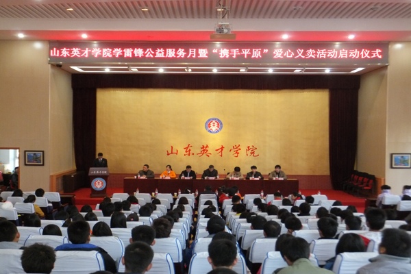 11月14日,山东英才学院学雷锋公益服务月暨“携手平原”爱心义卖活动在学术报告厅启动。山东英才学院副院长李崇银,团委书记龙新良,团委老师王坤丽及平原县委多位领导出席了此次启动仪式。
