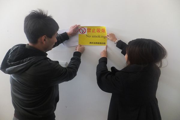 活动从上午九点开始持续到中午十二点结束,同学们都积极踊跃参加,纷纷在条幅上签上自己的名字,一起加入到拒绝吸烟的倡议中来。同时志愿者在图书馆和教学楼的每个楼层的醒目位置都张贴了“禁止吸烟”的标语,以便大家随时随地警戒自己。早在“志愿者公益活动月”启动仪式中,学院副院长王兆良就要求当代大学生拒绝吸烟,热爱生命,不虚度青春。此次活动迎合了学院的要求,期望可以帮助学生改掉吸烟的坏习惯,带动更多的人远离烟草,珍爱生命。