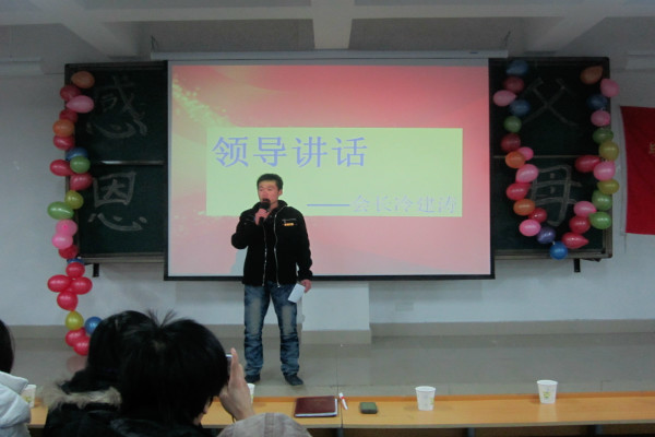 11月23日下午,由山东英才学院北校区青年志愿者协会举行的“感恩父母,真情无限”感恩教育活动举行。参加活动的人员包括北校区社团联合会常务副主席赵维海,北校区各社团负责人,北校区团委个部门负责人,以及青年志愿者协会的所有部员和部分会员。