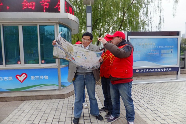 志愿者队伍到达泉城广场的青年志愿服务岗后,交警首先向志愿者们介绍了交通法规和交通安全常识以及《青年志愿服务岗日常运行细则》章程,在志愿者们认真学习,分配好任务后,立即开展了城市文明志愿服务岗活动.